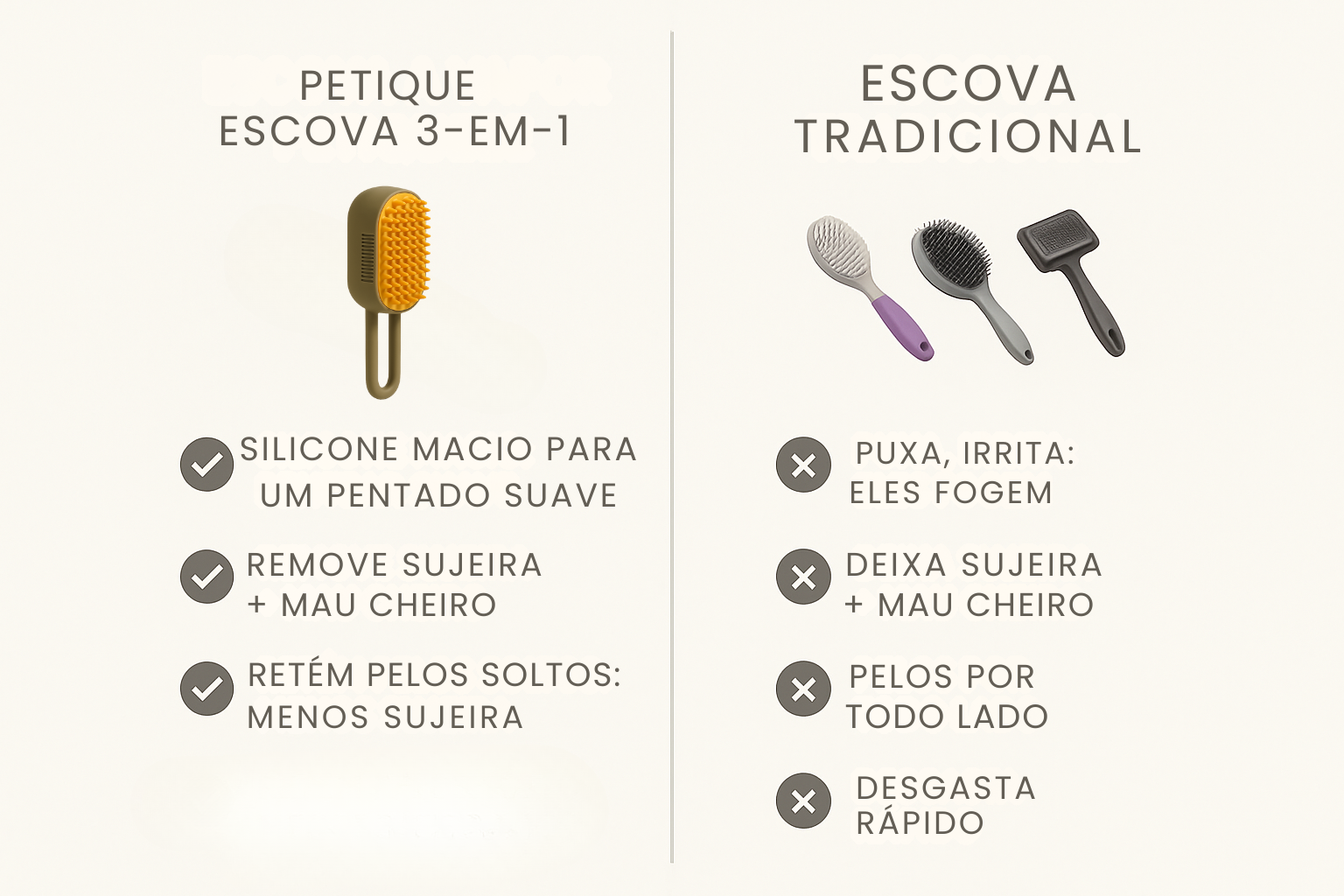 Com a Petique 3-em-1, a hora de pentear passa a ser um momento de relaxamento (para si e para o seu patudo!)